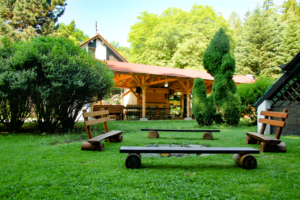 V létě se sedí u venkovního grilu, na dřevěném uhlí se připravují nejen steaky, špízy a kuřata, ale také selata a další pochoutky. Návštěvníky venkovní části restaurace nepřekvapí ani náhlé zhoršení počasí a prudký déšť, protože je celý prostor zastřešený. V případě potřeby se dají boční okna dokonce zakrýt komůrkovým plexisklem a místo vytopit infračervenými zářiči.